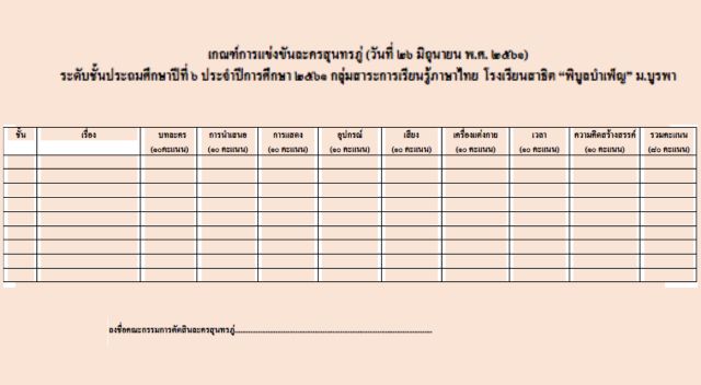 ประกาศให้นักเรียน ชั้นประถมศึกษาปีที่ 6 ได้เตรียมตัวแสดงละคร ของท่านสุนทรภู่ มีกติกาในการประกวดดังนี้